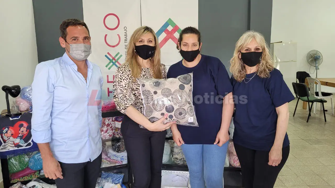 La senadora nacional y candidata a renovar su banca, María de los Angeles Sacnun, estuvo ayer en la localidad de Arteaga donde junto al Presidente Comunal, Julián Vignati y a Marcelo D’Angelo, coordinador nacional de Cooperativas de Servicios Públicos del INAES, visitó la Cooperativa de trabajo textil Texco, formada por mujeres y dedicada a la producción de indumentaria, abasteciendo además de esos insumos al municipio local.