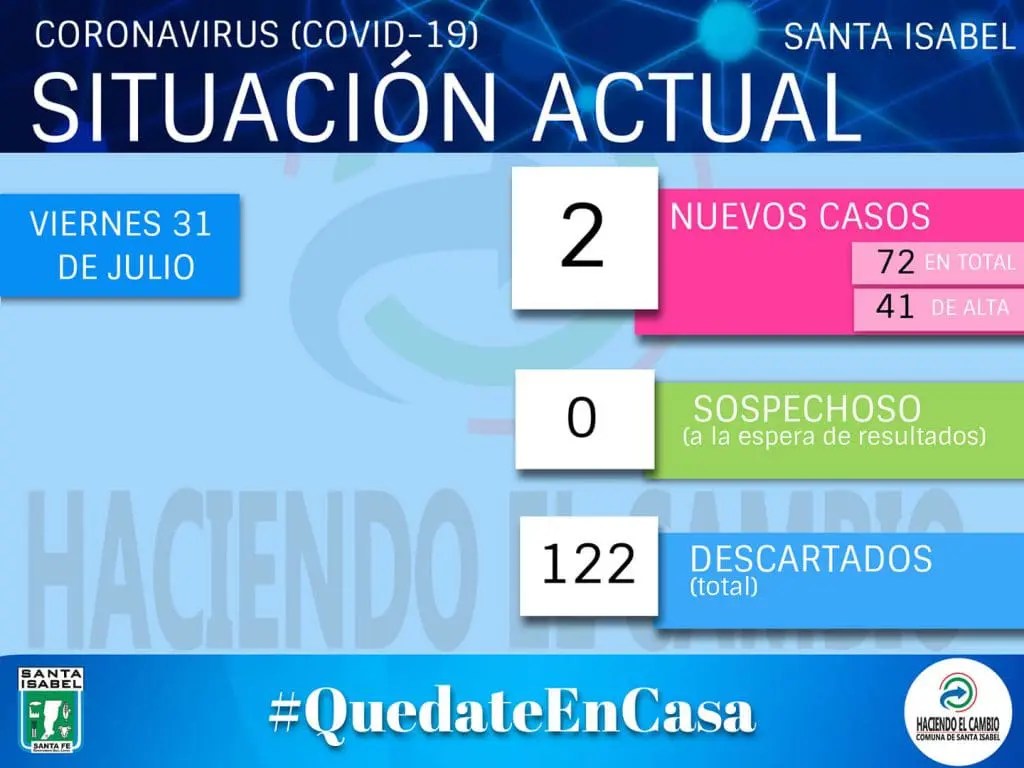 El Comité de Crisis de la Comuna de Santa Isabel comunicó que en el día de hoy se realizaron 3 hisopados, de los cuales 2 dieron resultados positivos para Covid-19.