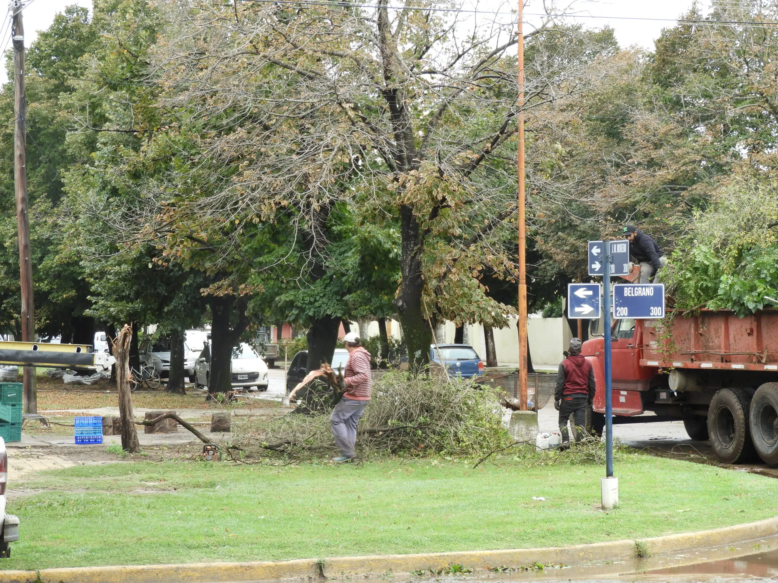 En primera instancia las autoridades priorizaron la atención de los damnificados por los destrozos en viviendas y en algunos casos procedieron a la evacuación de los ocupantes de las mismas. Una vez asegurada la situación la cuadrilla de poda junto a bomberos procedió a despejar de ramas y arboles las calles asegurando la transitabilidad y evitando se produzcan accidentes.
