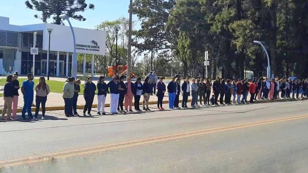 El cortejo salió, pasadas las 10 de la sala velatoria de calle Chile 533 y pasó frente al Hospital Regional A. Gutiérrez, donde casi un centenar de empleados del nosocomio ofrecieron una silenciosa y dolorosa despedida.