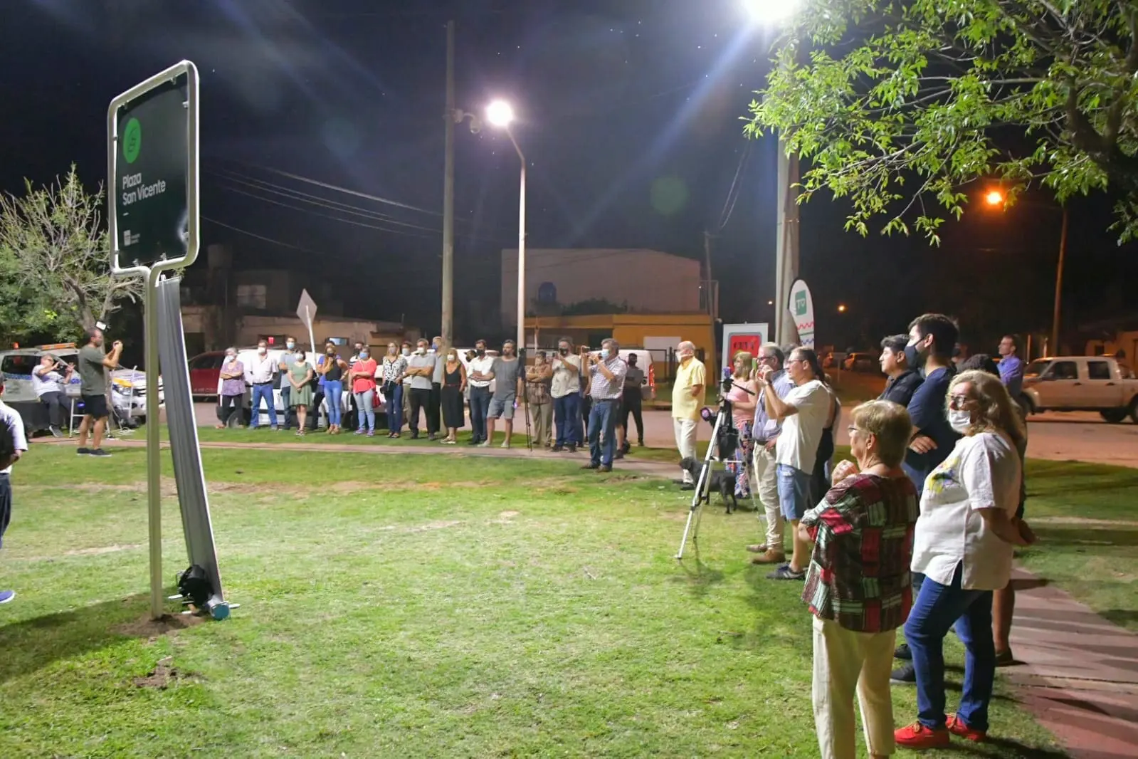 Este miércoles por la noche, el intendente Leonel Chiarella, acompañado por el presidente del Concejo Deliberante, Juan Ignacio Pellegrini, dejó inauguradas las luminarias LED y mobiliario público en la plaza del barrio San Vicente.