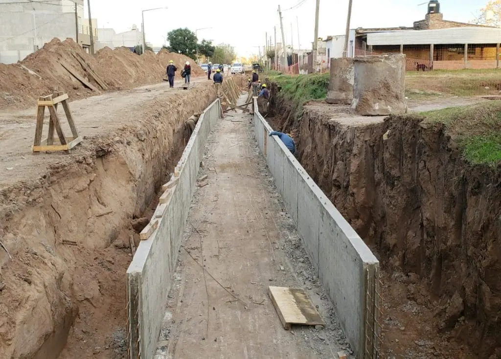 Se trata de la etapa final de un emisario de 1.400 metros distribuidos en cuatro conductos troncales, financiado por la provincia con un presupuesto original de 60 millones de pesos; tras una gestión del municipio iniciada en 2016, la obra fue licitada en 2019 y luego sufrió un parate por el inicio de la pandemia hasta que pudo retomarse.