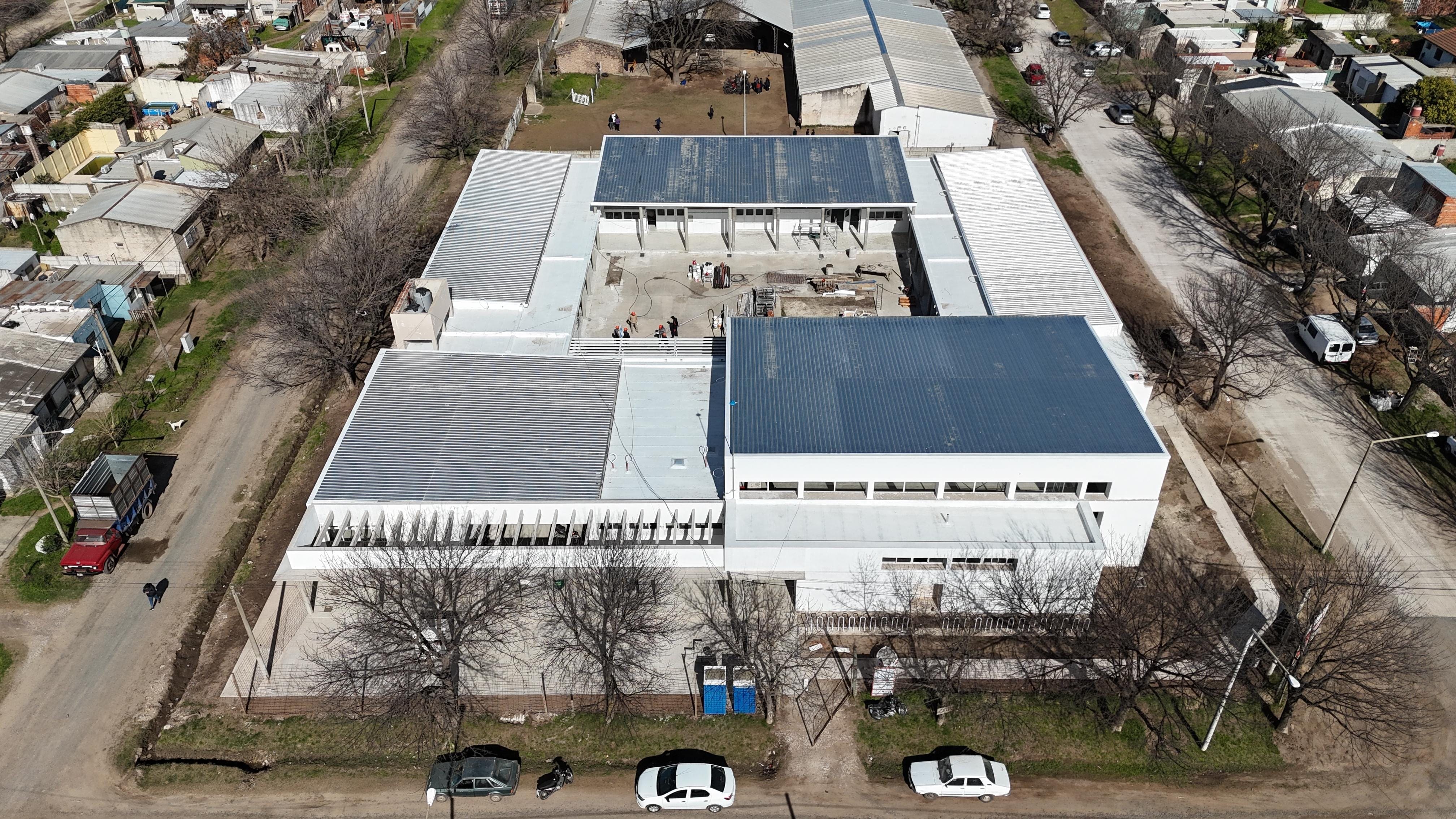 Actualmente se está avanzando con la terminación de desagües pluviales, la instalación de sanitarios, bebederos, muebles y mesadas. Además, se colocarán luminarias, rejas, mástil y baranda en la rampa de ingreso, y se continuará con los trabajos de pintura, pulido de pisos y parquización. También está prevista la provisión de equipamiento como termotanques, cocina industrial, pizarrones, percheros y frisos.