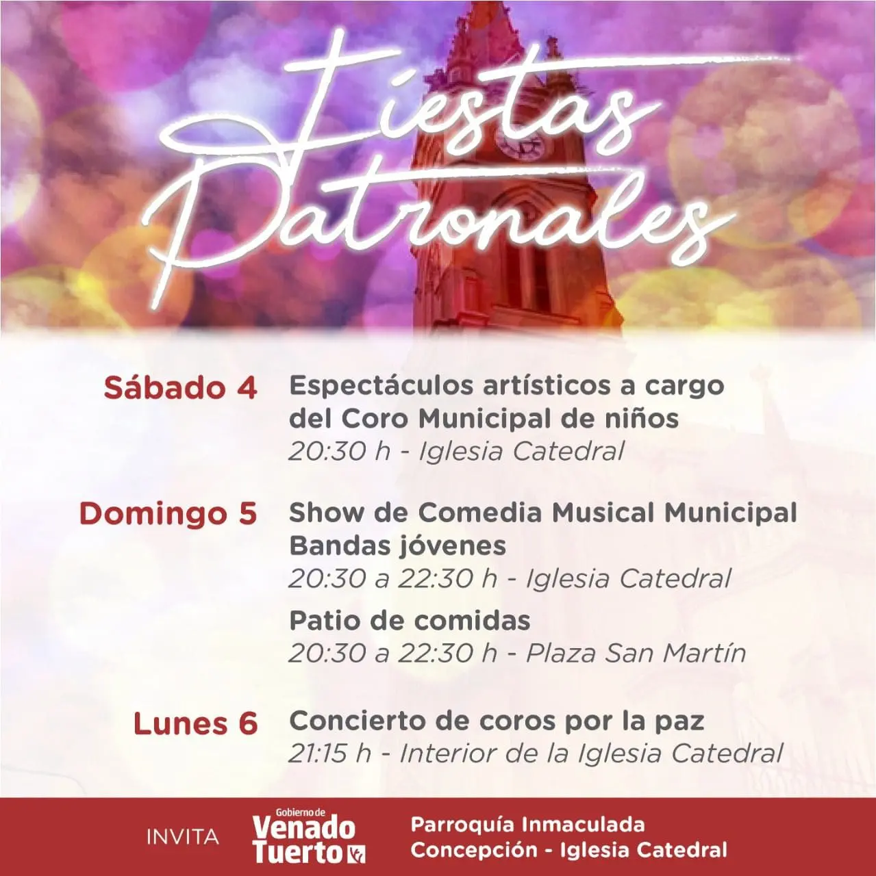 Con variados números artísticos, feria de emprendedores locales y una amplia grilla de actividades litúrgicas, vuelven las Fiestas Patronales. Se desarrollarán del 4 al 8 de diciembre en Belgrano y 25 de Mayo, para celebrar la Inmaculada Concepción de María Madre, patrona de la ciudad.