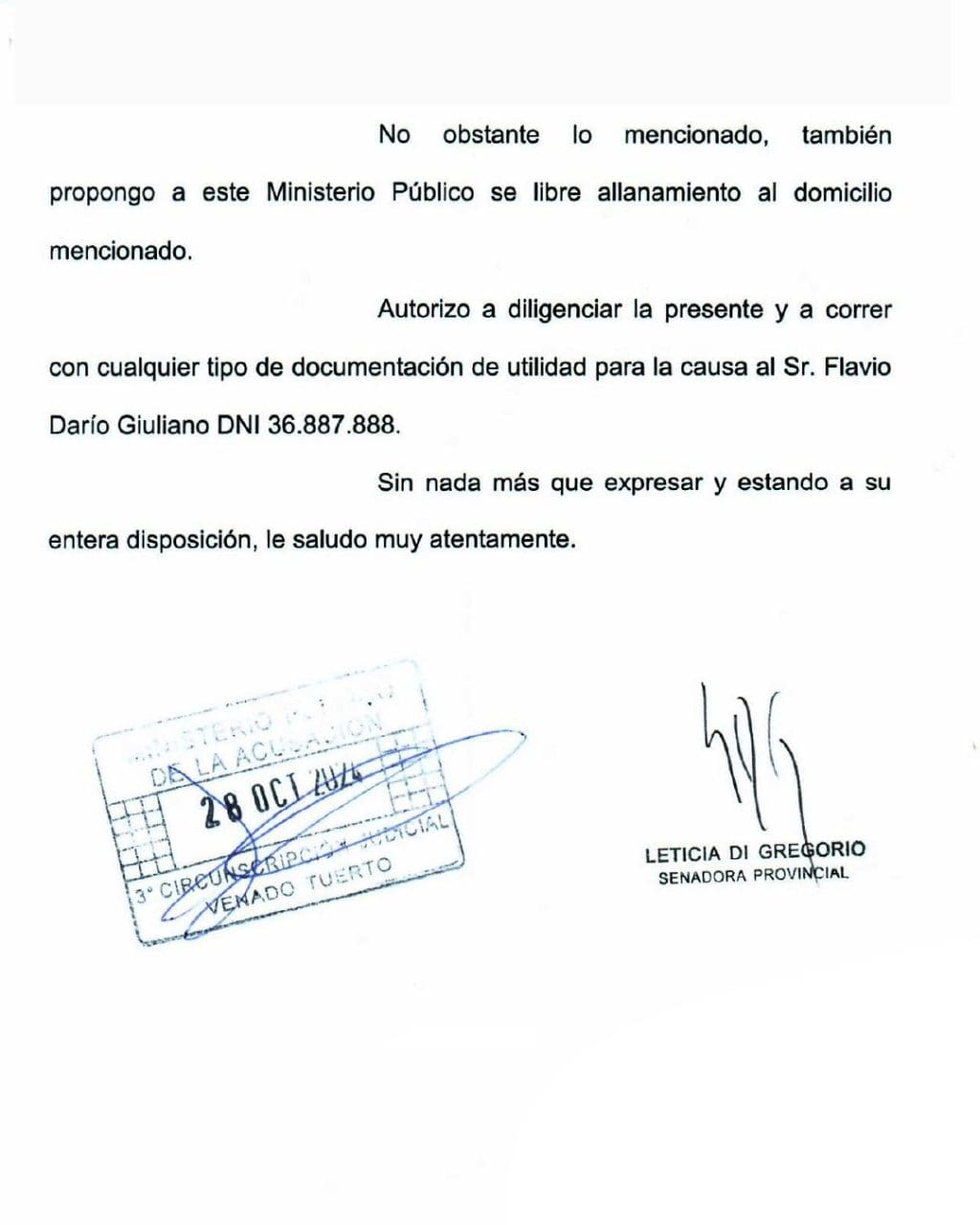 La senadora provincial Leticia Di Gregorio, presentó una nueva denuncia con nombre, apellido y domicilio de una persona de Venado Tuerto que es conocida por el tráfico de estupefacientes, robos y amenazas con armas de fuego a vecinos en el sector norte de la ciudad.
