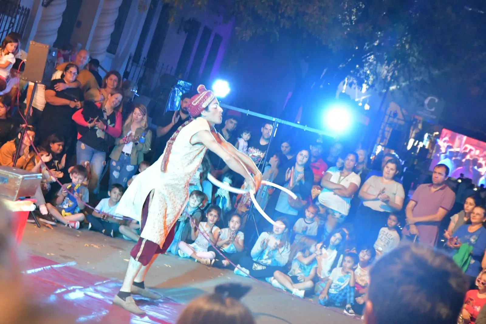 Antes de las palabras alusivas y de la parte protocolar, poco después de las 18 comenzó a musicalizarse el ambiente, mientras el grupo de circo Lumiere de Rosario amenizaba la previa con una “recibida” utilizando calle Belgrano y el cantero interno de la plaza, entre 25 de Mayo y Marconi.