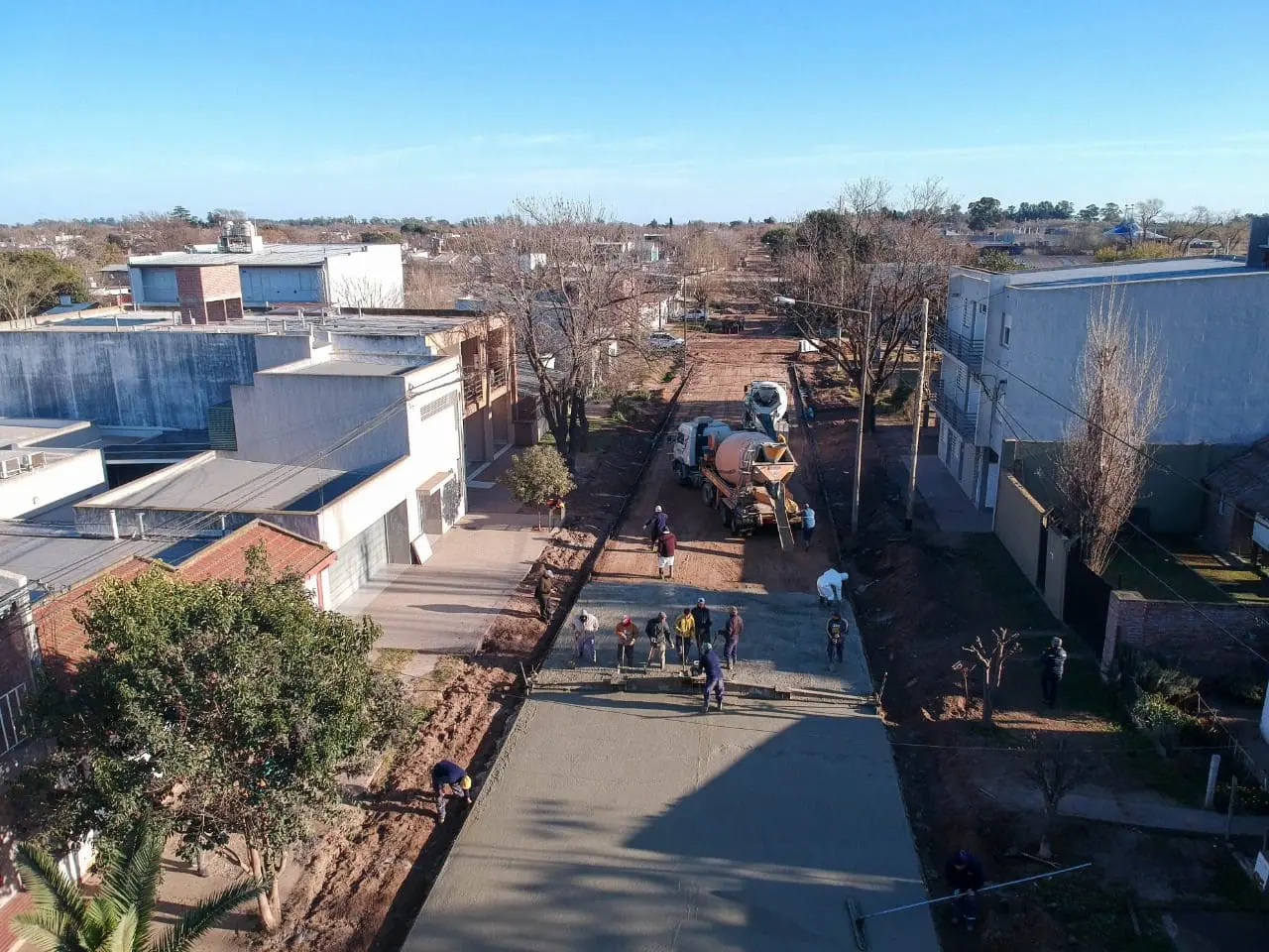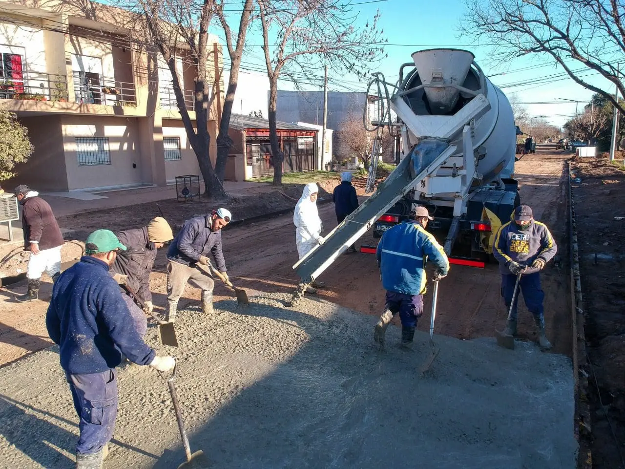 Este jueves los equipos del Gobierno municipal efectuaron el hormigonado de pavimento en calle Balcarce entre Sáenz Peña y Vélez Sarsfield, cuadra del barrio Norte en la que el miércoles se realizaron trabajos de movimiento de suelo.