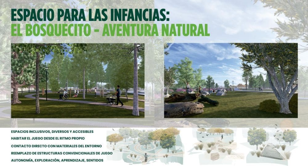 El Área Recreativa Norte contempla la creación de un espacio público de calidad en la zona norte, con infraestructura pensada para el deporte, la recreación y el encuentro familiar. El proyecto incluye senderos, espejos de agua, puentes miradores, mobiliario urbano, más de 500 ejemplares de diferentes especies forestales, y sectores de juegos pedagógicos para las infancias. También prevé áreas deportivas, zonas para emprendedores y espacios destinados a eventos culturales.