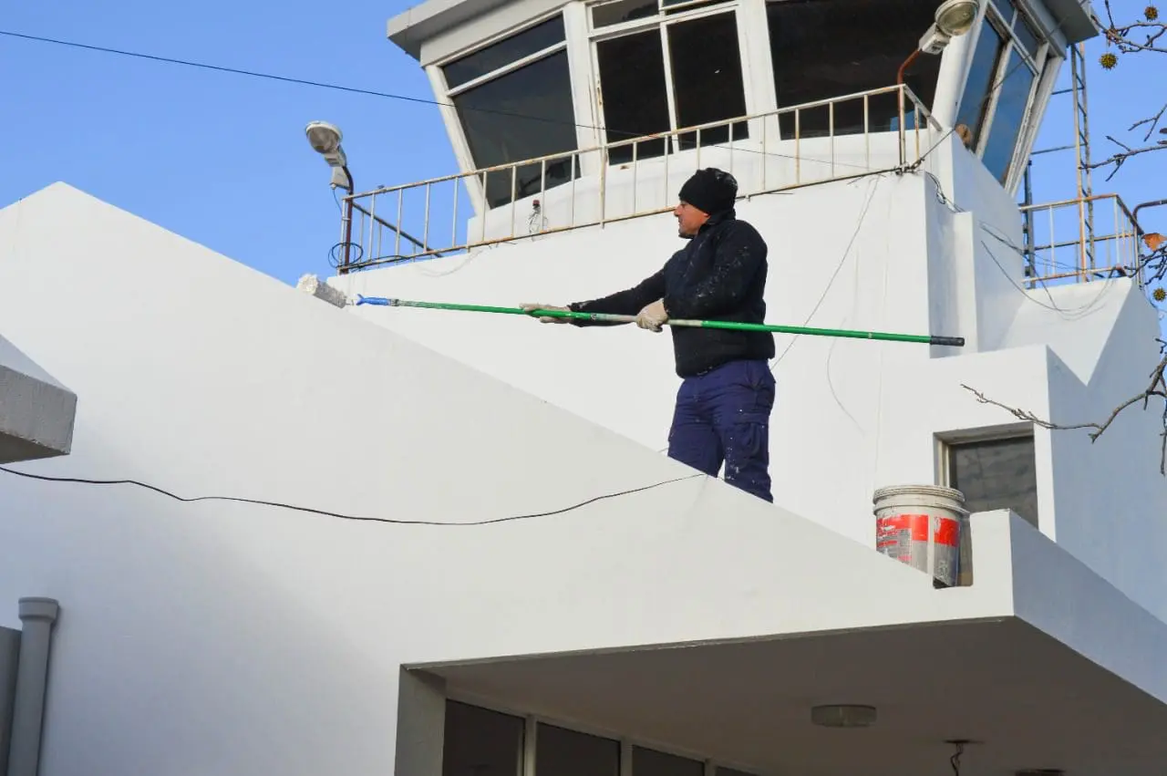 Las tareas consistieron en impermeabilización de techos, arreglo de grietas y mampostería; pintura interior de aberturas; pintura exterior y torre de control, y reacondicionamiento de la instalación eléctrica.