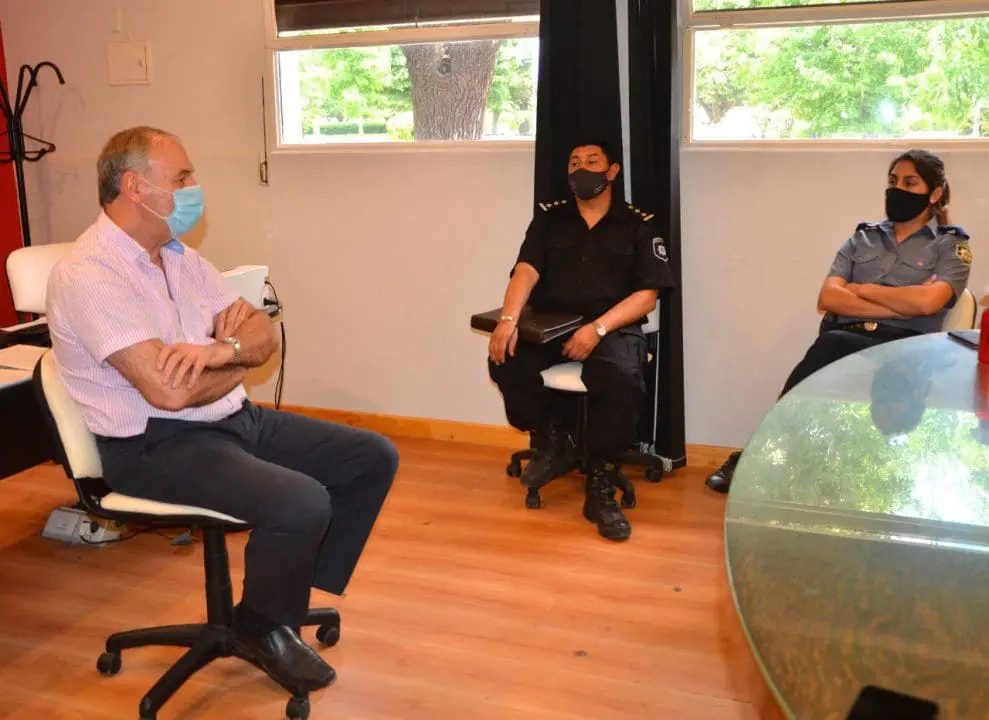 El intendente de Villa Cañás, Norberto Gizzi, y la secretaria de Acción Social de la Municipalidad, Melisa Manzino, se reunieron ayer con autoridades policiales para abordar la modalidad de trabajo con respecto al área social.