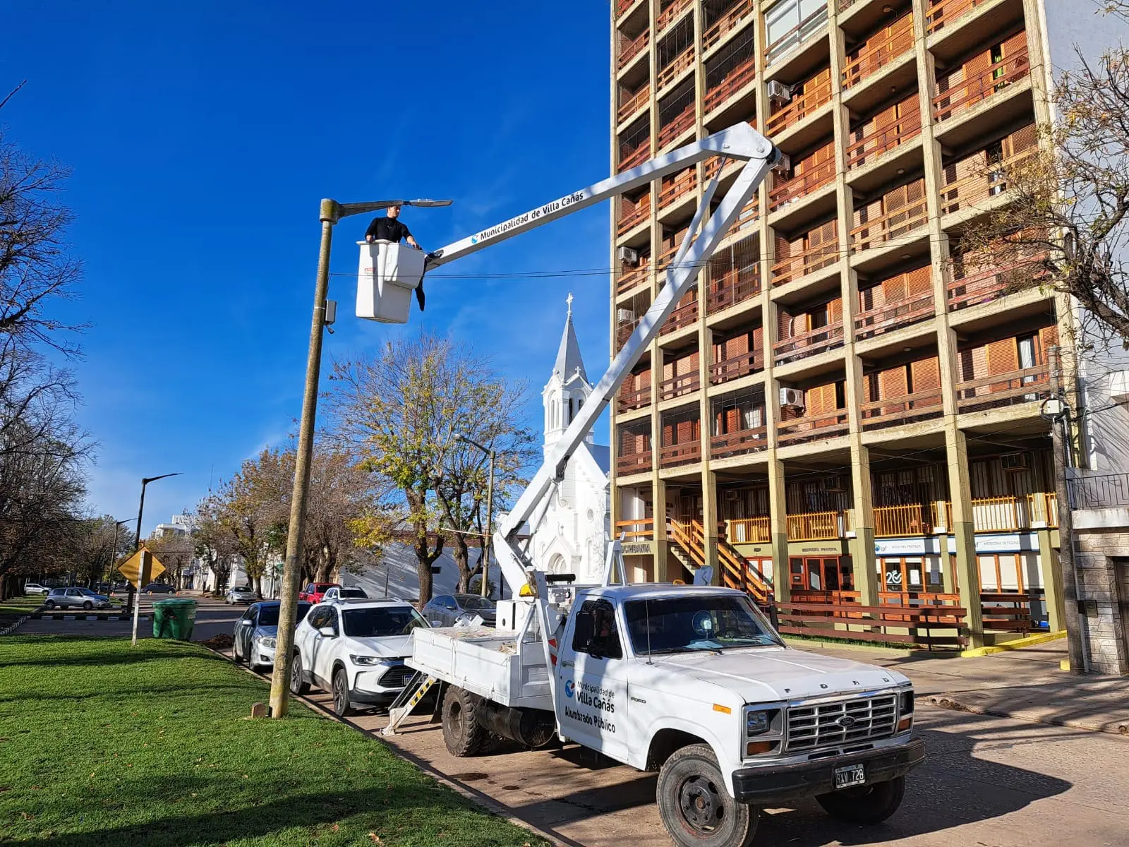 La Municipalidad de Villa Cañás, a través del área de Servicios Públicos, está realizando trabajos para mejorar la iluminación en diferentes sectores de la ciudad.