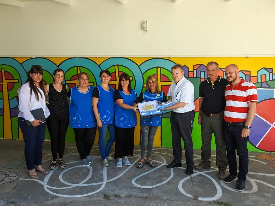 Luego en el Jardín de Infantes Nº29 hizo entrega a su Directora Fabiana Ledesma y a su Vicedirectora Marisa Malagoli, una bandera Argentina de Ceremonia.