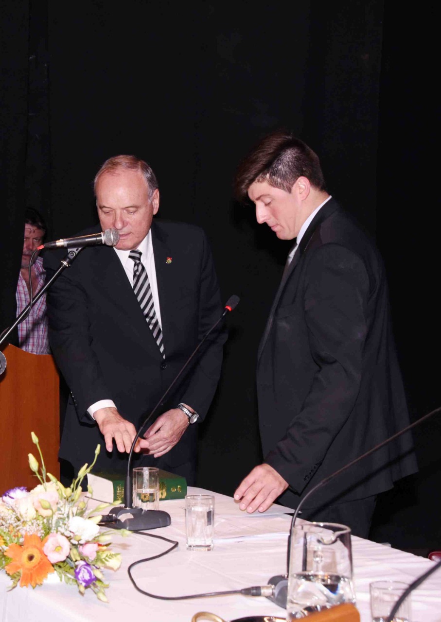 Con la presencia de los integrantes del ejecutivo municipal, actuales concejales y salientes, autoridades de instituciones educativas e intermedias, intendentes con mandato cumplido, familiares y público en general, el actual mandatario realizó la jura para desempeñar durante cuatro años más (período 2019-2023) el cargo para el cual fue elegido en las elecciones generales que se desarrollaron el 16 de junio pasado