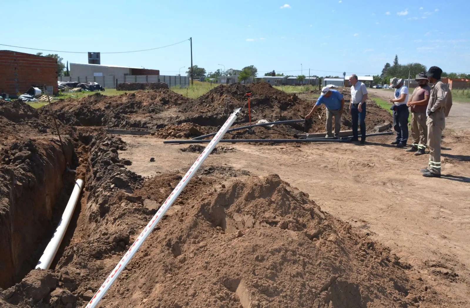En un trabajo en conjunto con la Cooperativa de Provisión de Agua Potable, se están colocando las cañerías para brindar el servicio de agua potable y cloacas.