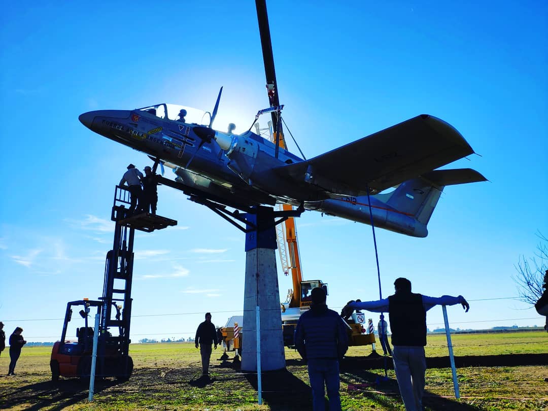Está aeronave histórica de fabricación argentina que participara activamente durante la Guerra de Malvinas, luego de varias gestiones junto al Comodoro Osmar Bracco y la Fuerza Aérea Argentina, el Aeroclub Villa Cañás logró obtener en comodato este ejemplar para colocarlo como Monumento a los Caídos de Malvinas en un pedestal de sus instalaciones.