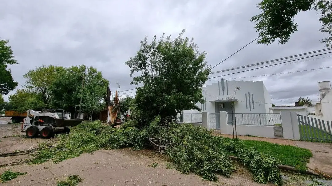 Por otra parte, la Municipalidad de Villa Cañás trabaja con una cuadrilla de operarios para remover árboles caídos en varias calles de la localidad.
