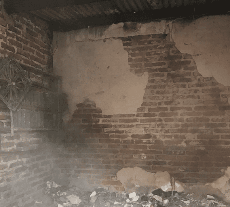 Al llegar a la ubicación, los bomberos constataron el hecho ocurrido y procedieron a ingresar a un lavadero detrás de la casa, el mismo se encontraba consumido totalmente por las llamas para así poder extinguir el incendio sin contratiempos.