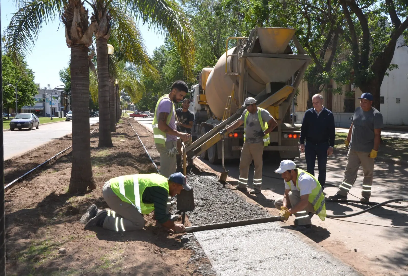 El Municipio sigue avanzando con la construcción de la bicisenda por Avenida 50. Ayer comenzó a colocarse hormigón en el tramo comprendido entre Calles 55 y 53.