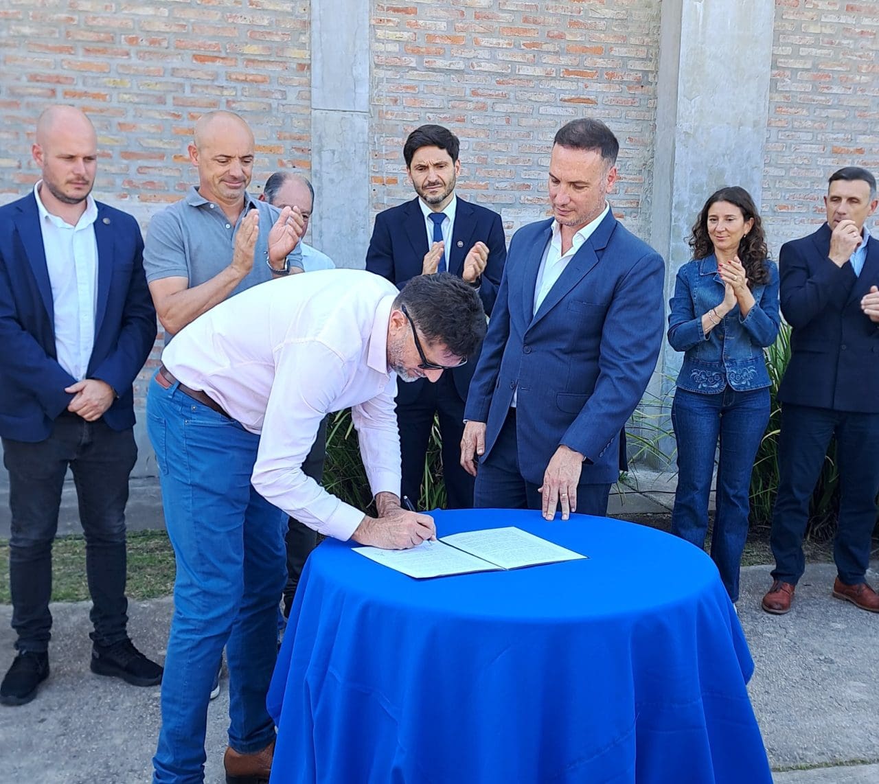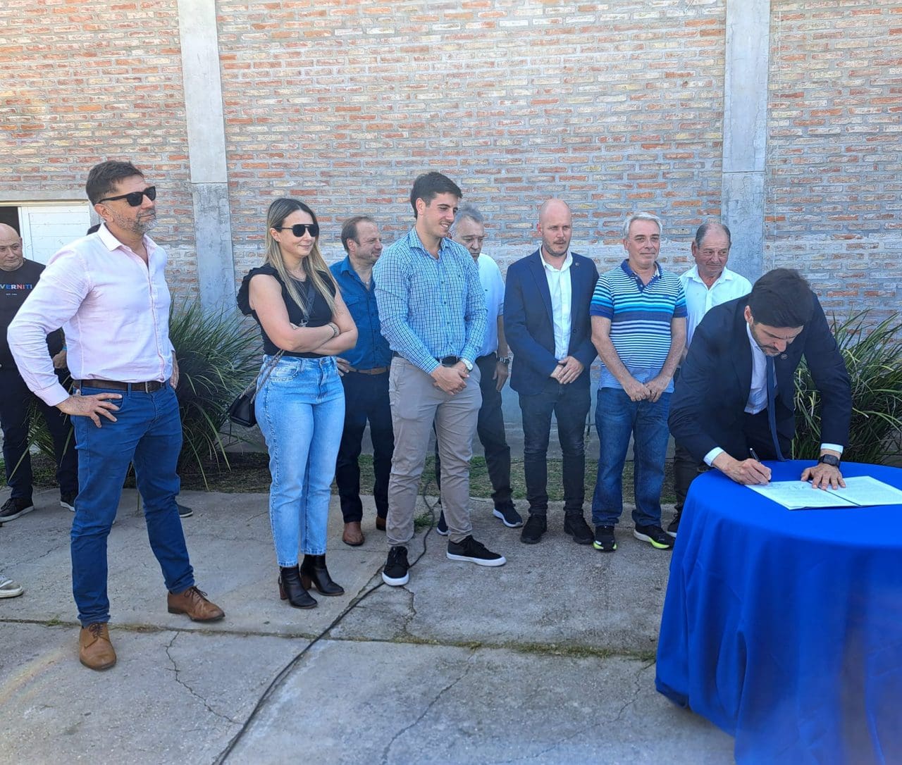 El secretario de Gobierno de la Municipalidad de Villa Cañás, Cándido Santa Cruz, participó hoy junto al gobernador de la provincia de Santa Fe, Maximiliano Pullaro, de la firma de convenios del Plan Incluir para los clubes Studebaker y Sportsman.