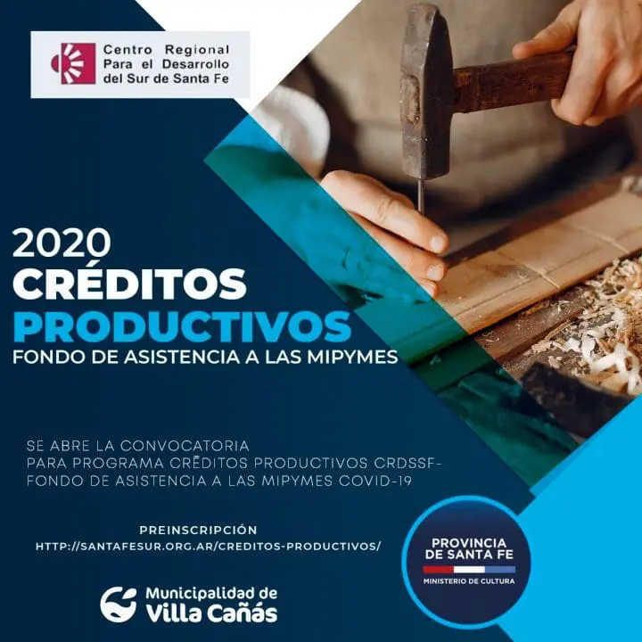 La Dirección de Producción y Empleo de la Municipalidad de Villa Cañás, a través del Centro Regional para el Desarrollo Sur y el Ministerio de Producción, Ciencia y Tecnología de la provincia de Santa Fe, pone en marcha un Programa de Crédito para industrias, comercios y servicios que fueron afectados económicamente durante la pandemia. La inscripción se realizará del 10 al 24 de agosto.
