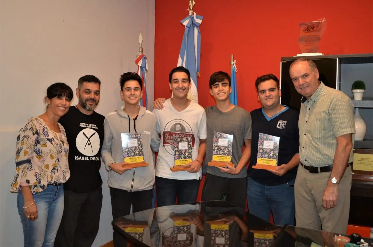 El intendente de Villa Cañás, Norberto Gizzi, y la directora de Cultura, Milagros Damico, realizaron un reconocimiento a bailarines cañaseños que lograron la clasificación al Pre Cosquín 2020.