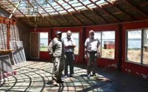 Una de las principales tareas fue la renovación del techo del quincho, donde funcionará el bufet. También se reacondicionaron varios quinchos, los cuales se habían deteriorado con el paso del tiempo y fueron afectados por malas condiciones climáticas. Se colocaron postes y paja nueva.
