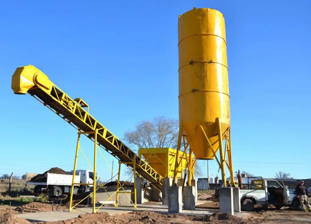 La Municipalidad de Villa Cañás dio un paso más en la construcción de la planta hormigonera municipal. Ayer se colocaron el silo para almacenar cemento y la cinta transportadora.