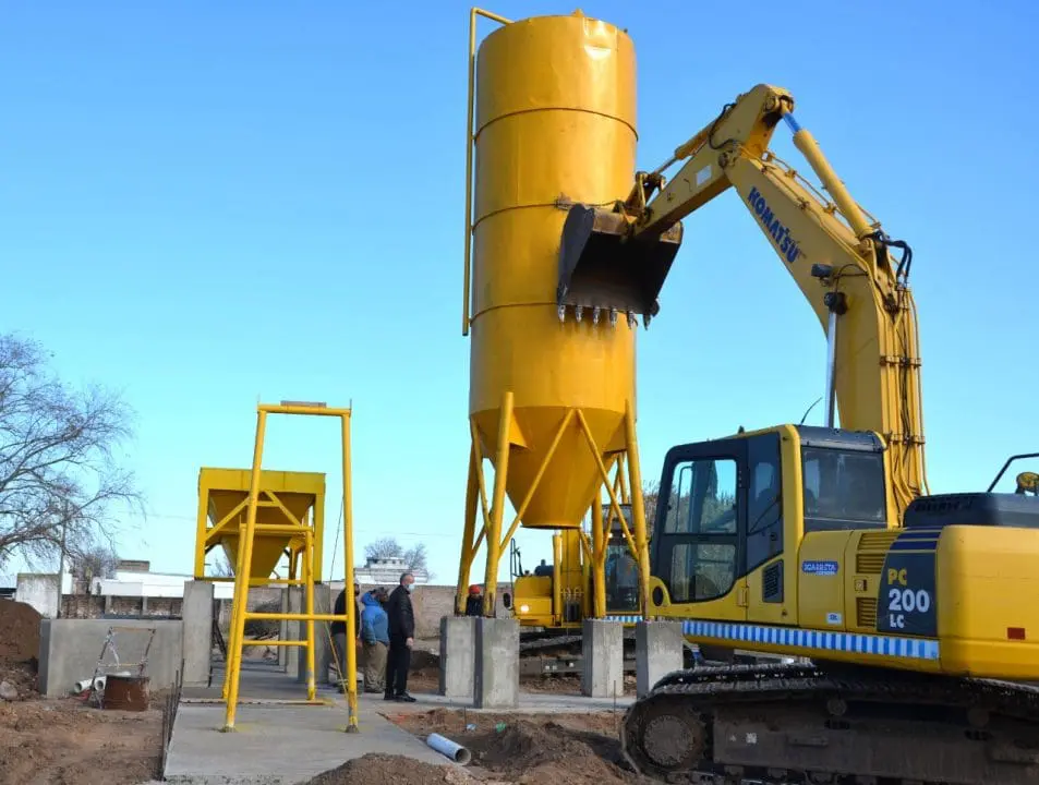 La Municipalidad de Villa Cañás dio un paso más en la construcción de la planta hormigonera municipal. Ayer se colocaron el silo para almacenar cemento y la cinta transportadora.