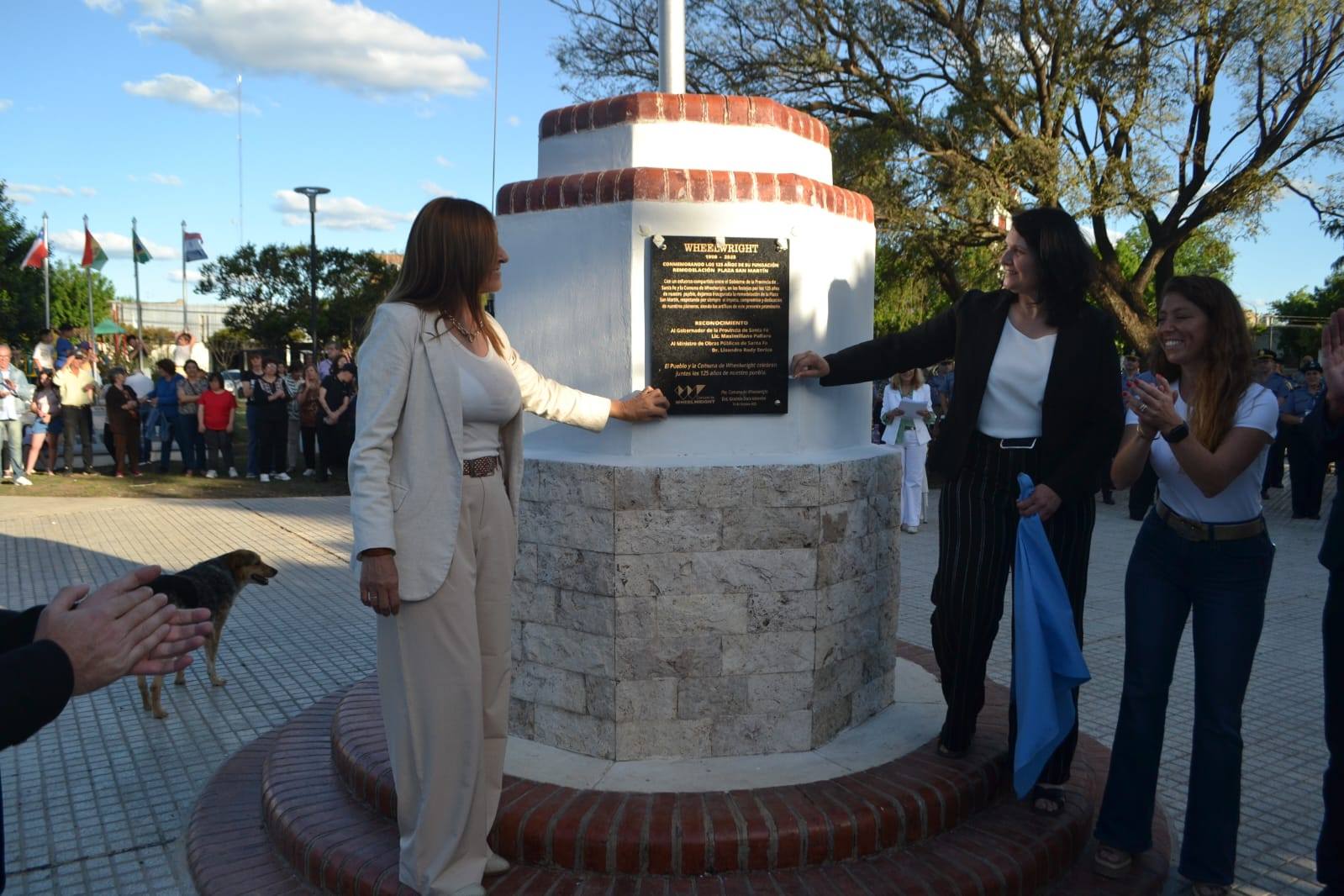 En el mástil central de la plaza se descubrió una placa conmemorativa que recuerda la fundación de la localidad y el esfuerzo conjunto entre la comuna y el gobierno provincial. La misma expresa el reconocimiento al gobernador Maximiliano Pullaro, y al ministro Lisandro Enrico, por su apoyo a la obra.