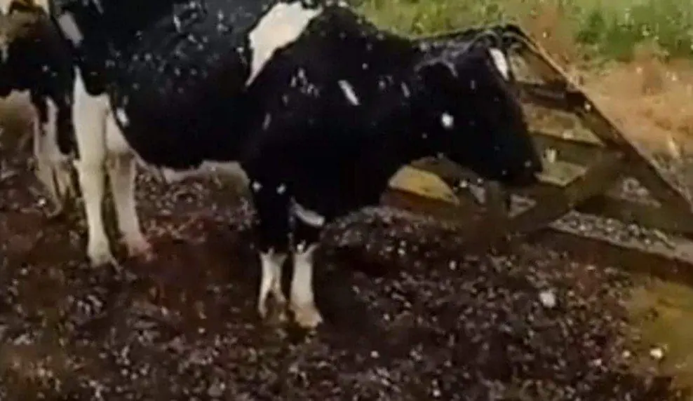 «También reportan nieve en Elortondo, sur de Santa Fe», posteó el SMN donde se puede observar cómo cae nieve sobre ganado en un campo.