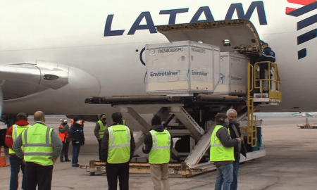 La aeronave Boeing 767, de la compañía Latam Cargo Colombia, aterrizó en Ezeiza a las 10 después de haber partido desde Miami...