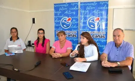 El intendente de Villa Cañás, Norberto Gizzi, junto a la secretaria de Acción Social, Melisa Manzino, la doctora Victoria Di Staso, la...