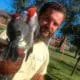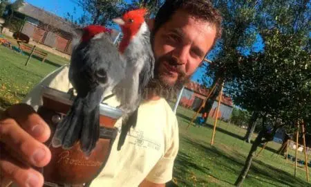 Jonatan Fantin anda en bicicleta por las calles de Urdinarrain con dos cardenales posados en su hombro. También lo acompañan a hacer...